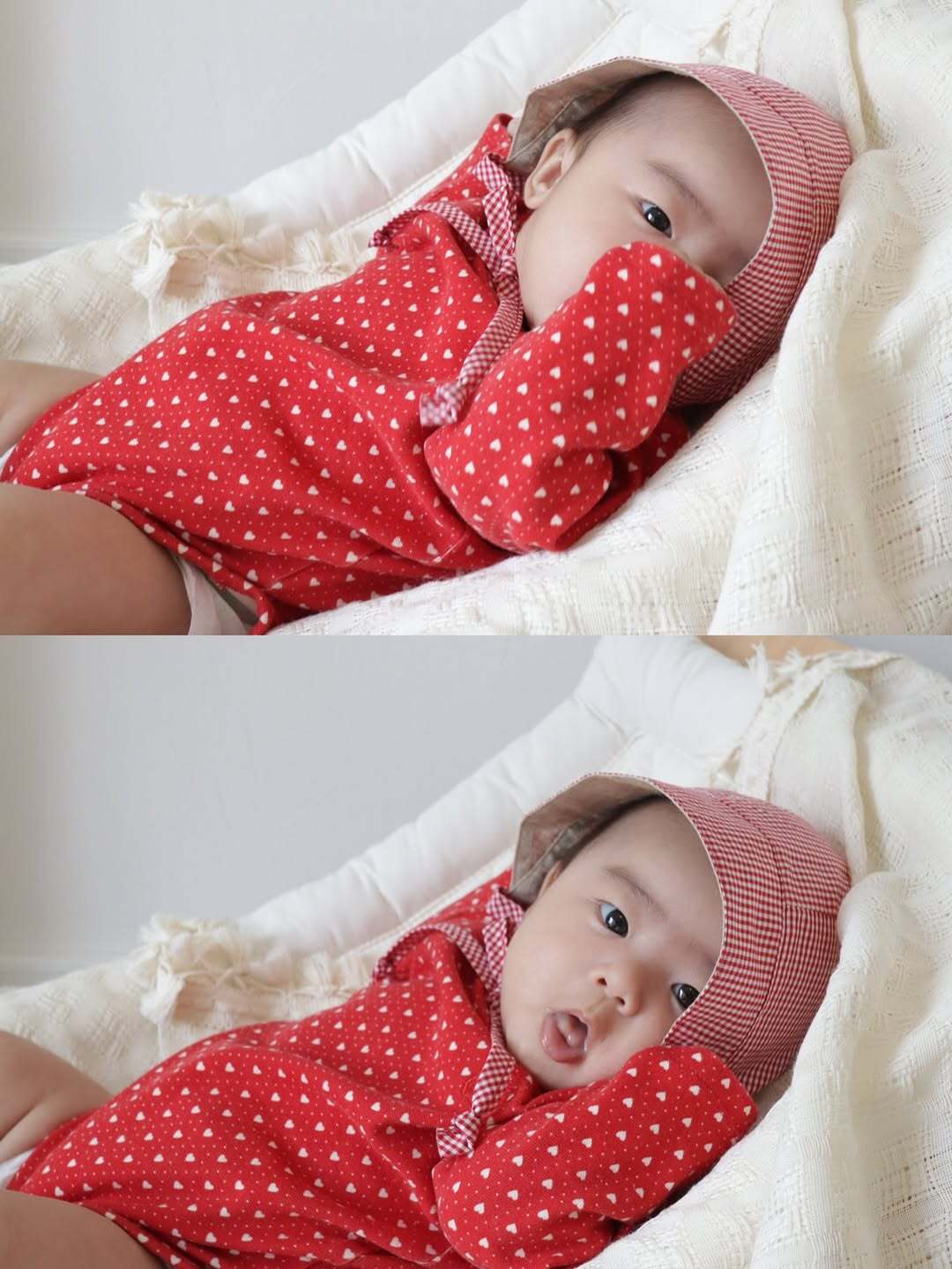 写真11、12枚目…生後4ヶ月、SSサイズ(レッドチェック)