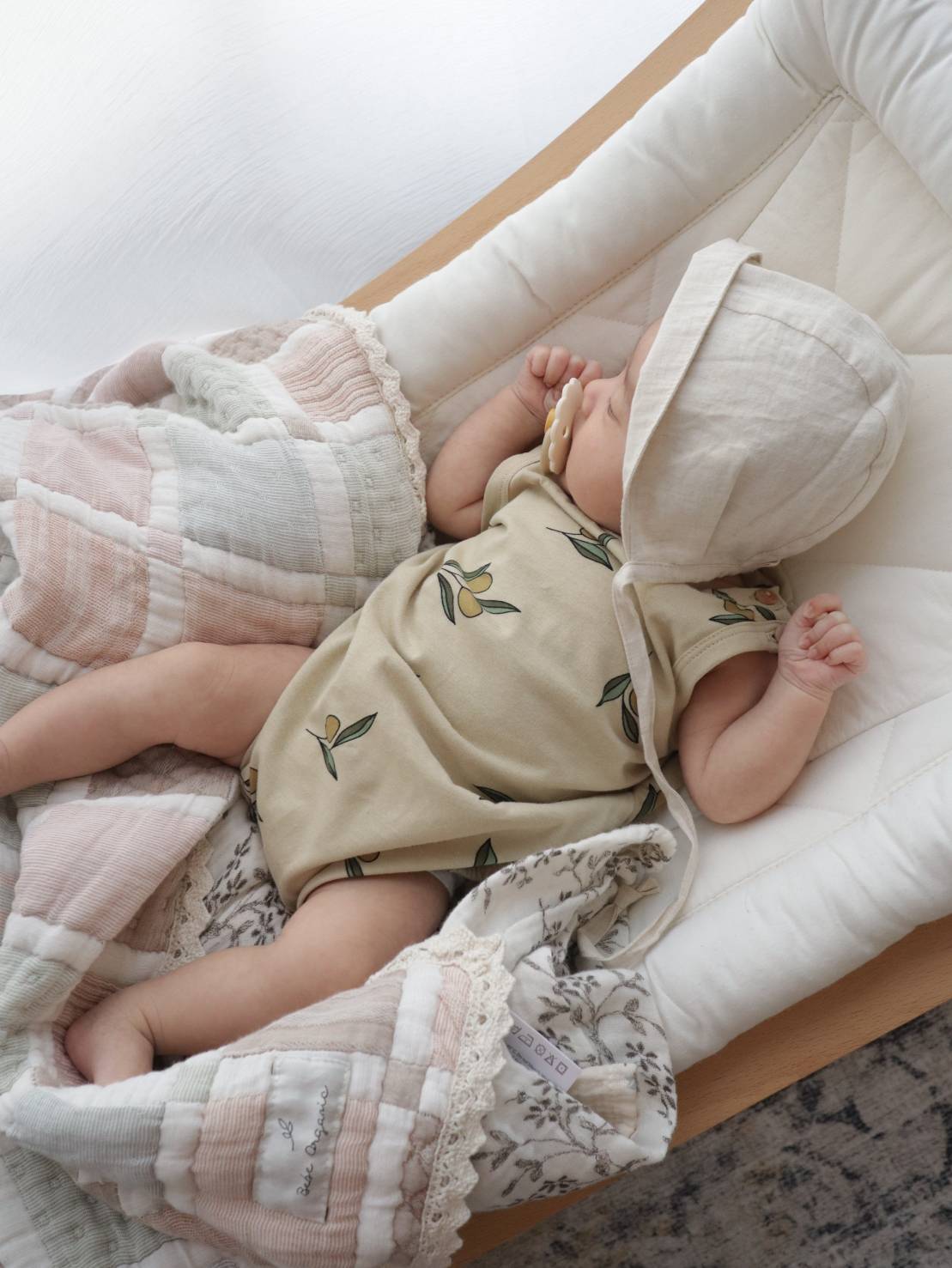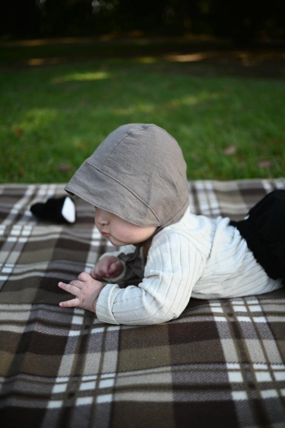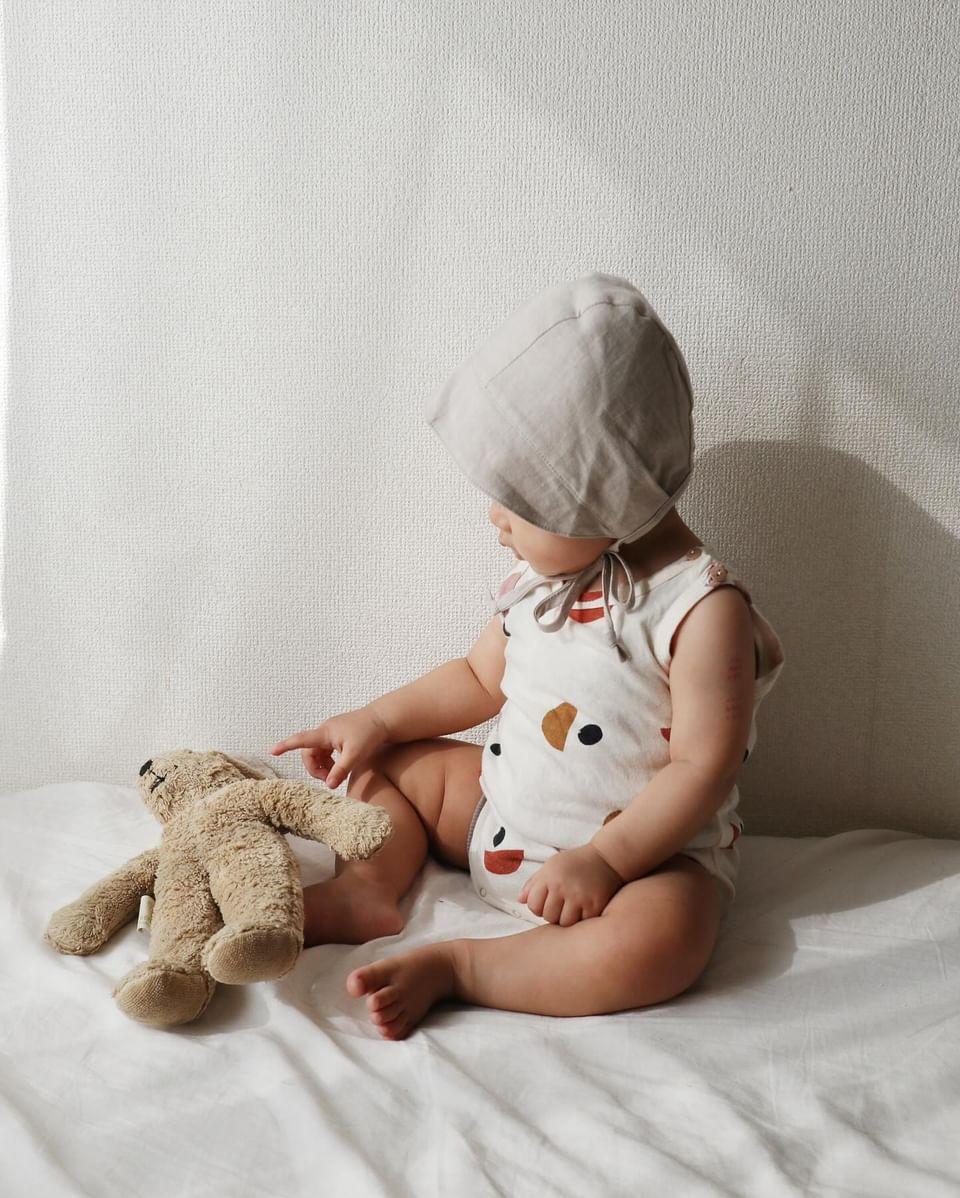 (出産して初めての外出はまぶしそうで陽の光と暑さから頭を守るのにアタフタした経験が、、、洋服は用意してても頭を守るのってついつい忘れがちになるのでおすすめアイテムです◎)