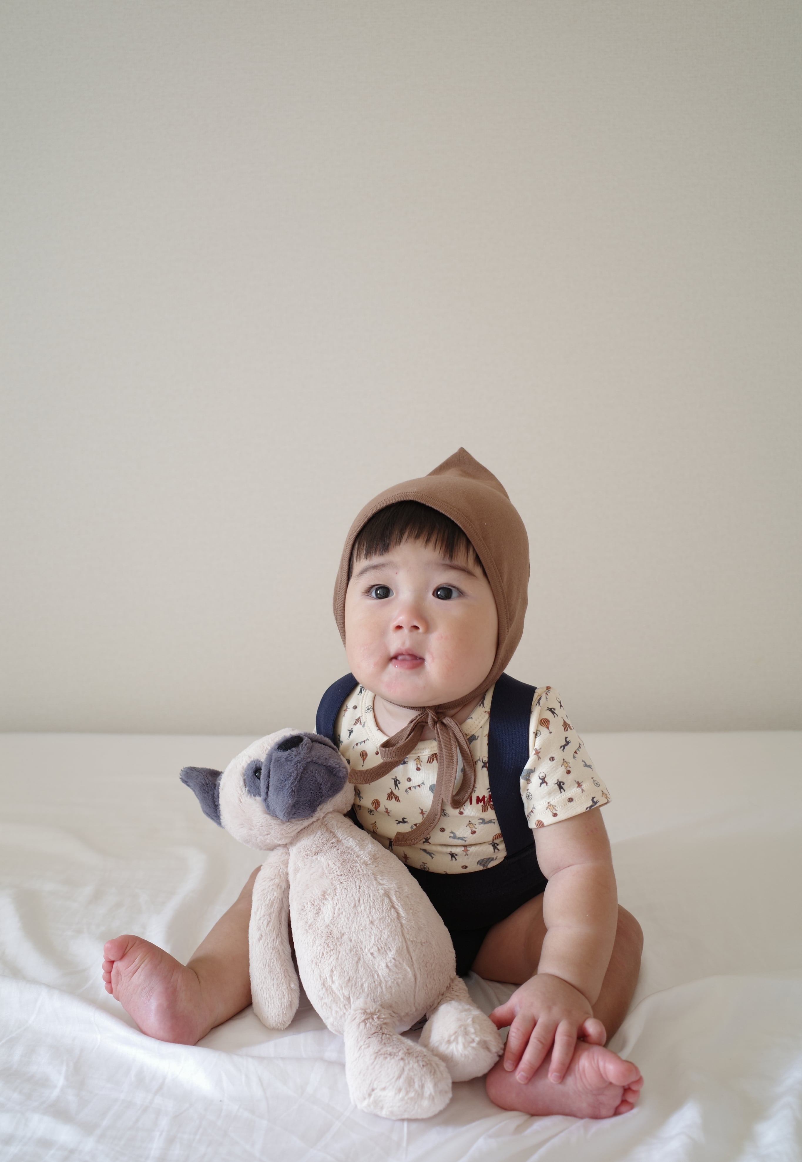 写真19、20枚目(生後8ヶ月、頭囲43cm、モカ、Mサイズ)