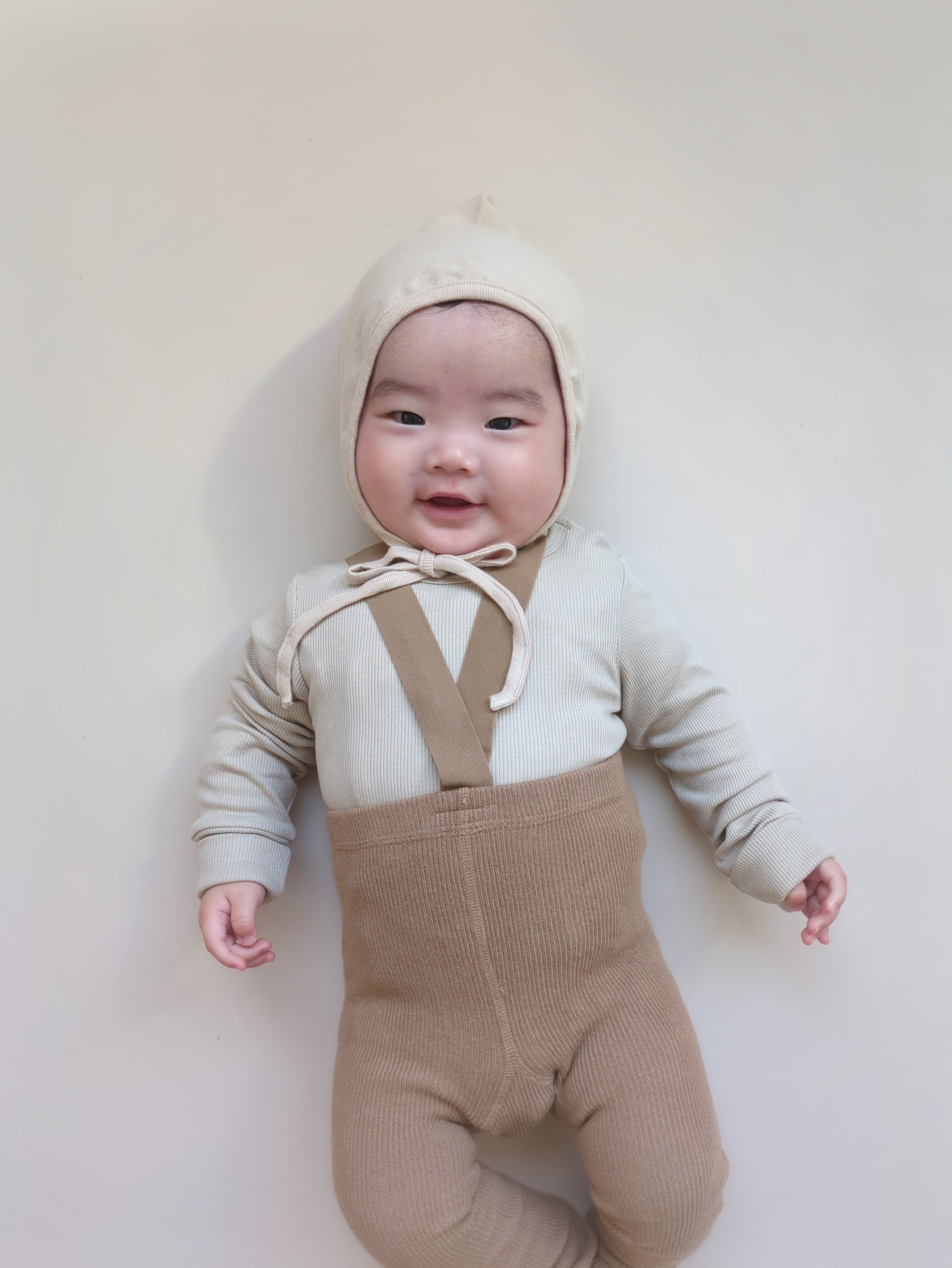 写真15、16枚目(生後5ヶ月、頭囲44cm、ライトベージュ、Mサイズ)