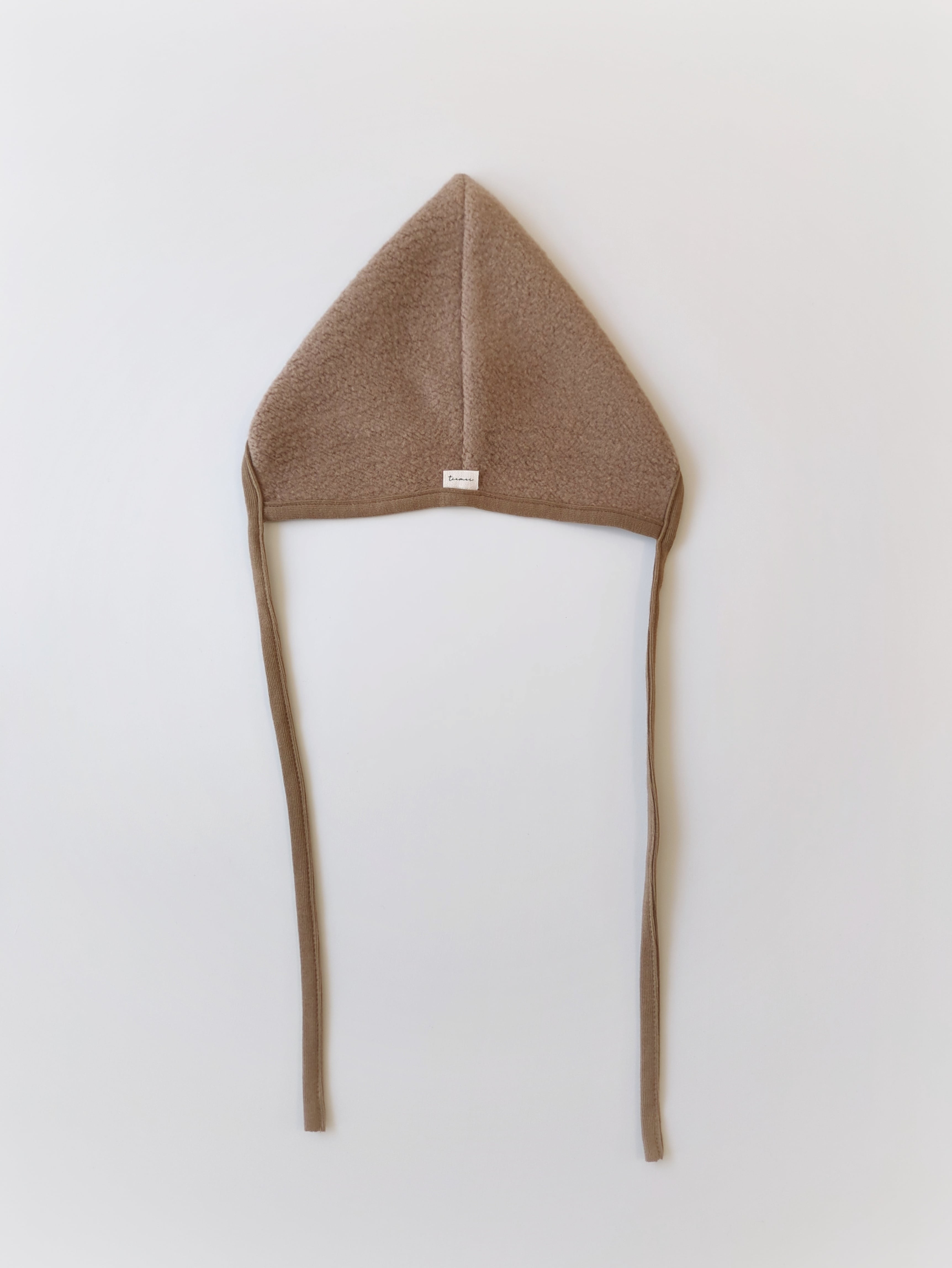 もこもこと起毛した生地を使用したピクシーボンネットです。