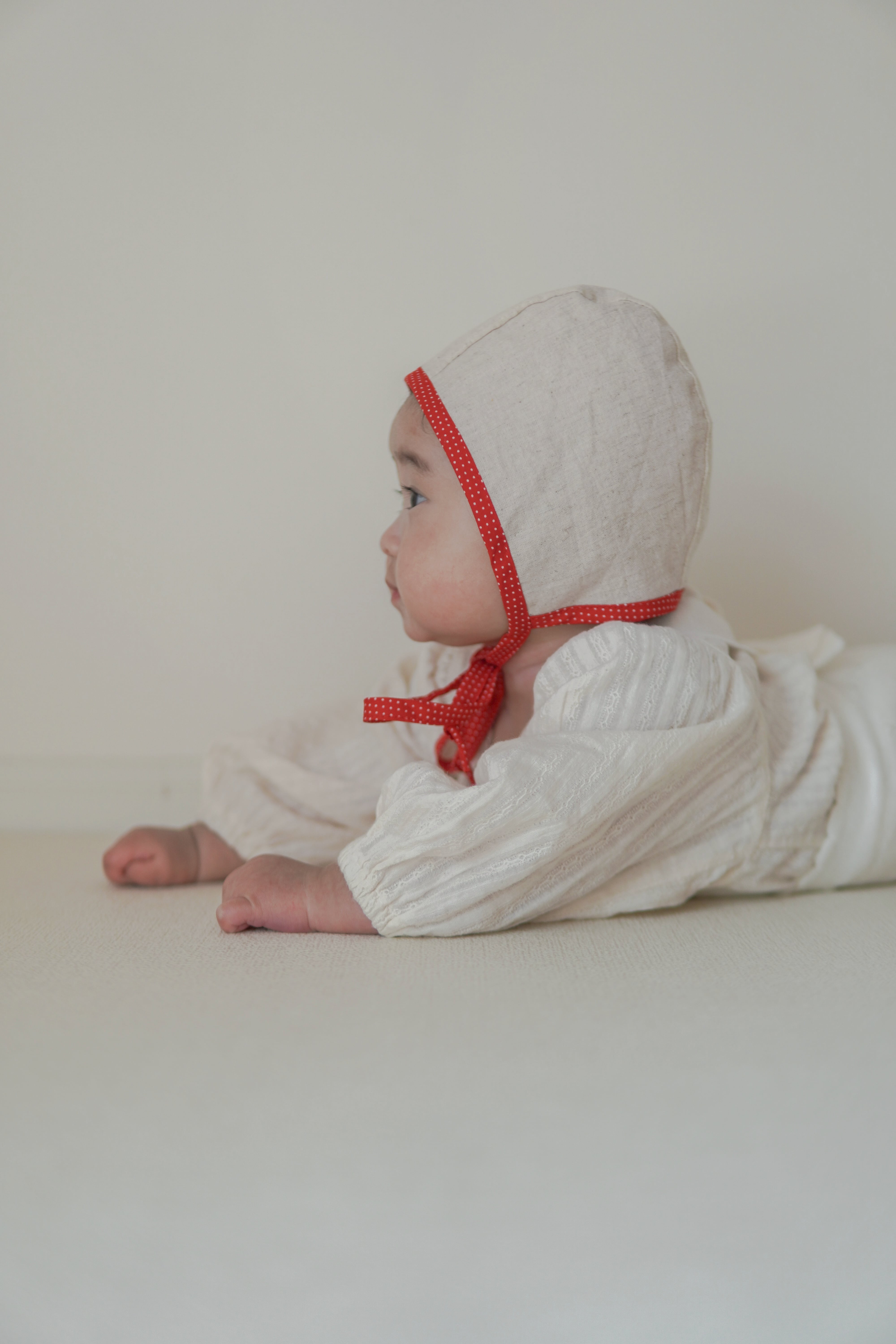 リバーシブルでお使いいただけるボンネットです。