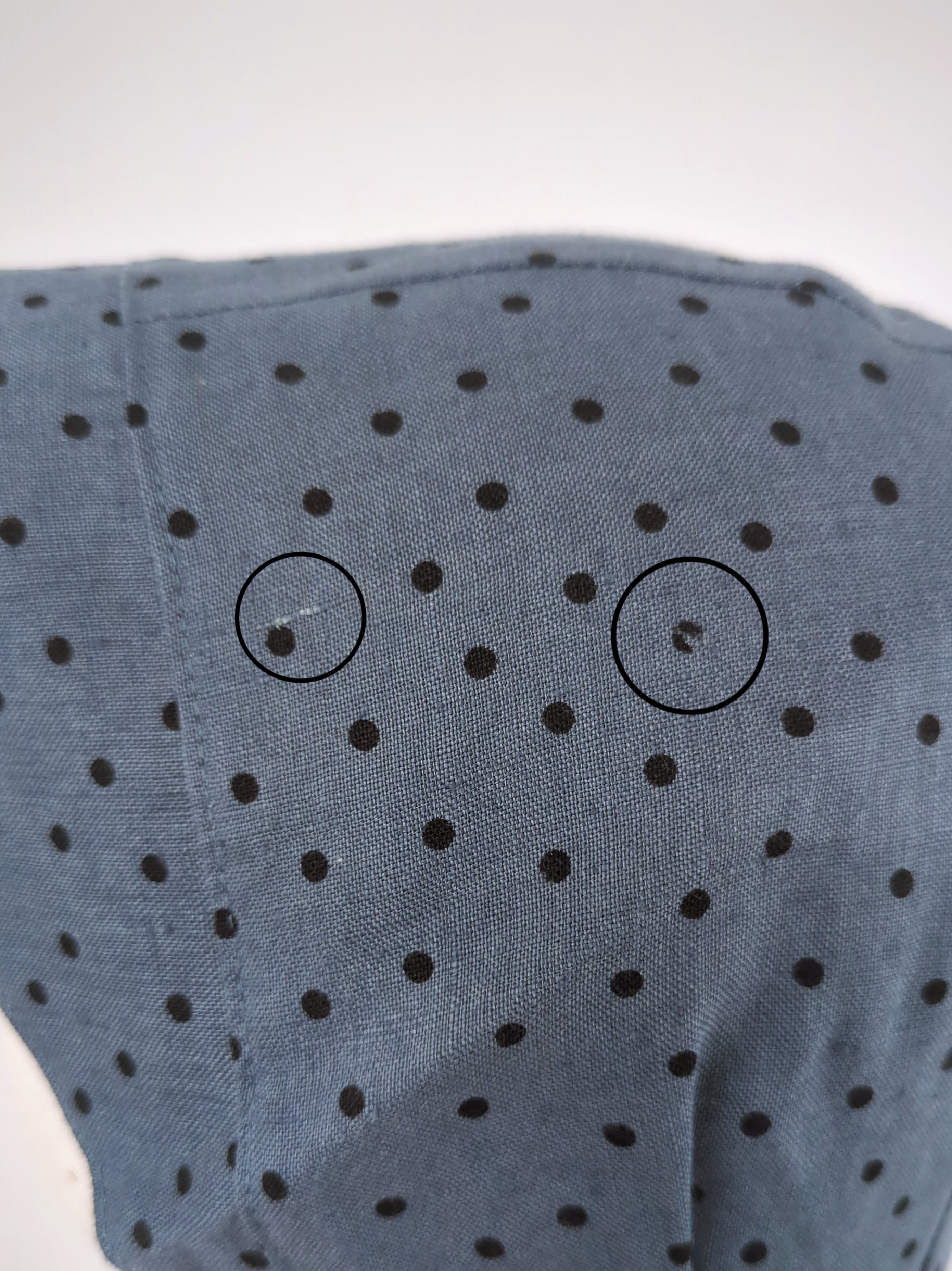 元々の生地に節とドットの丸の印字が欠けている部分がございます。(詳細は最後の写真と2枚をご覧ください。)