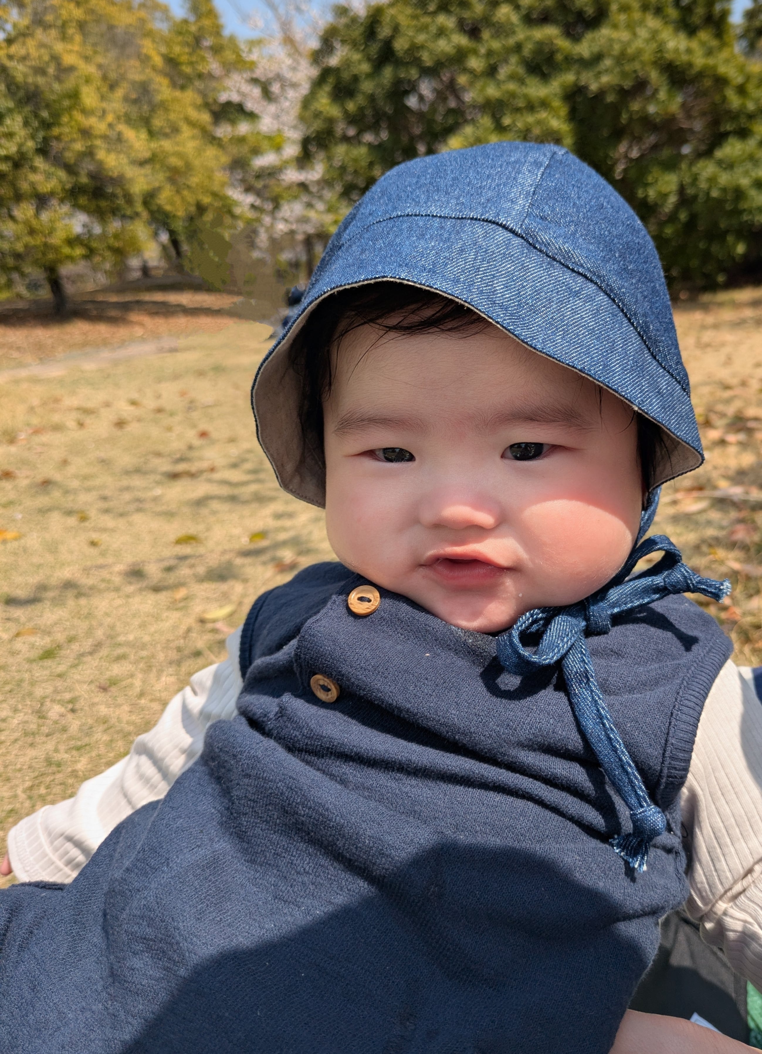 (出産して初めての外出はまぶしそうで陽の光と暑さから頭を守るのにアタフタした経験が、、、洋服は用意してても頭を守るのってついつい忘れがちになるのでおすすめアイテムです◎)